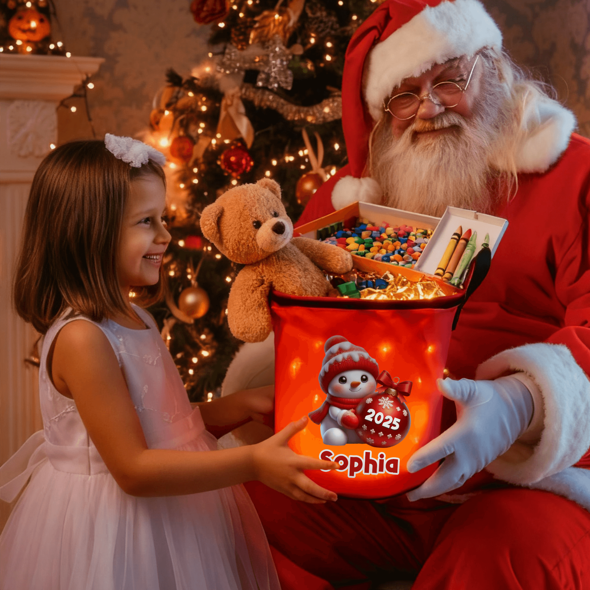 Personalized Name Cartoon Snowman with Bauble LED Light Christmas Basket |